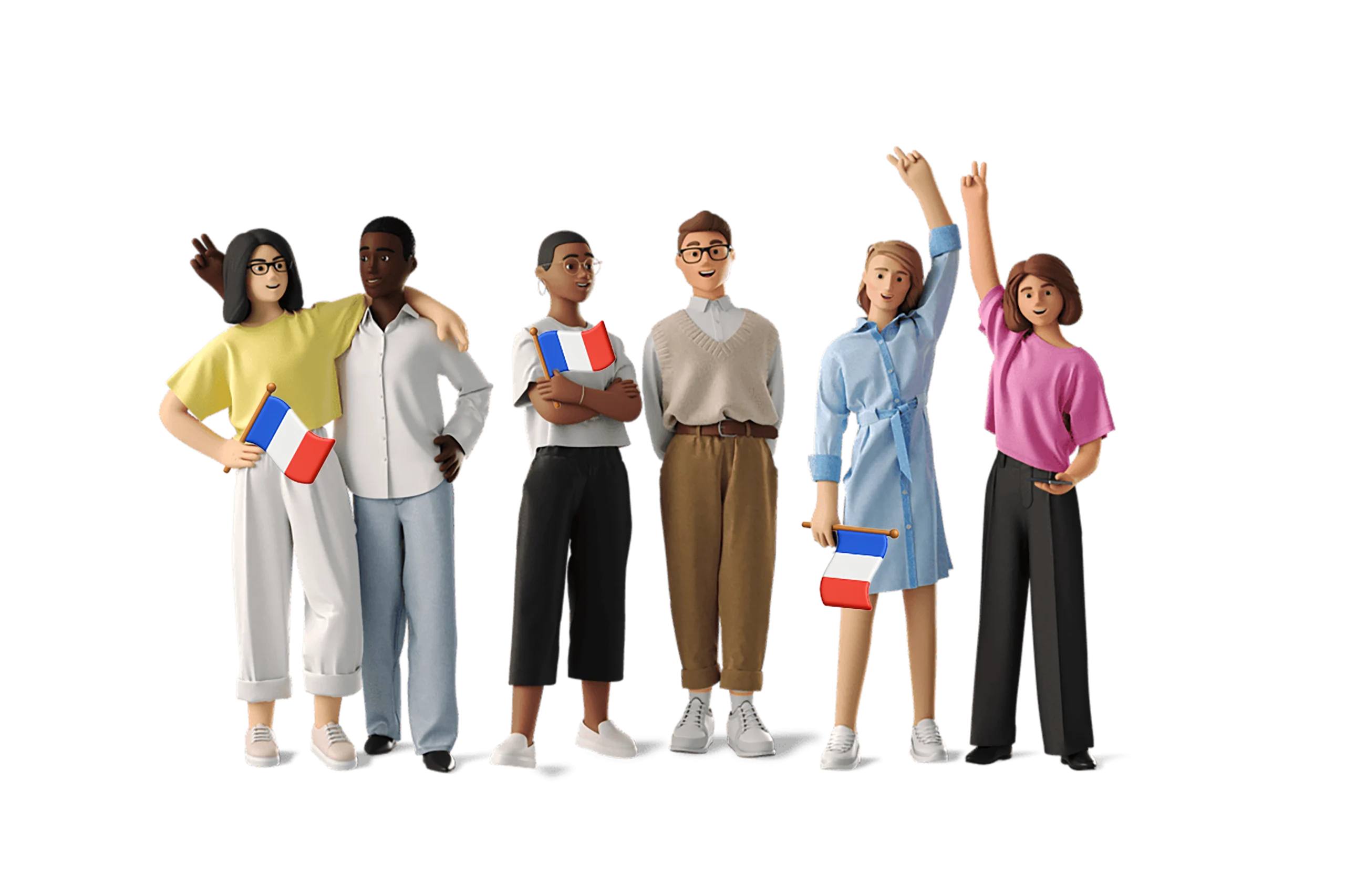De gauche à droite : (en haut) Jean-Christophe, Tarik, Mohamed, Steven, Baptiste, Karl,